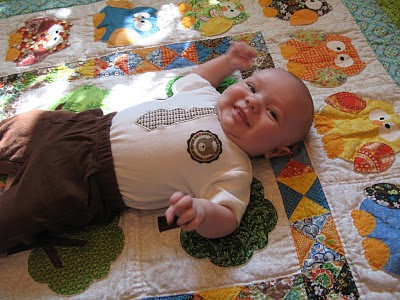 My favorite accomplishments? Smiling! He is the BEST smiler and loves to greet me with a smile after naps. It is amazing, so much so that I don't want to leave its golden glow to grab the camera so thus far there are no pics, so just take my word for it. Here are some other wonderful smiles: